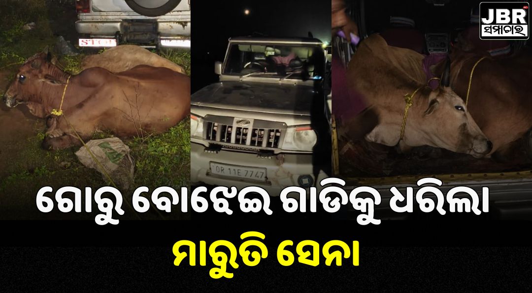 ଗୋରୁ ବୋଝେଇ ଗାଡିକୁ ଧରିଲା ମାରୁତି ସେନା, ୪ ଜଣ ଗୋ-ମାଫିଆ ଫେରାର।