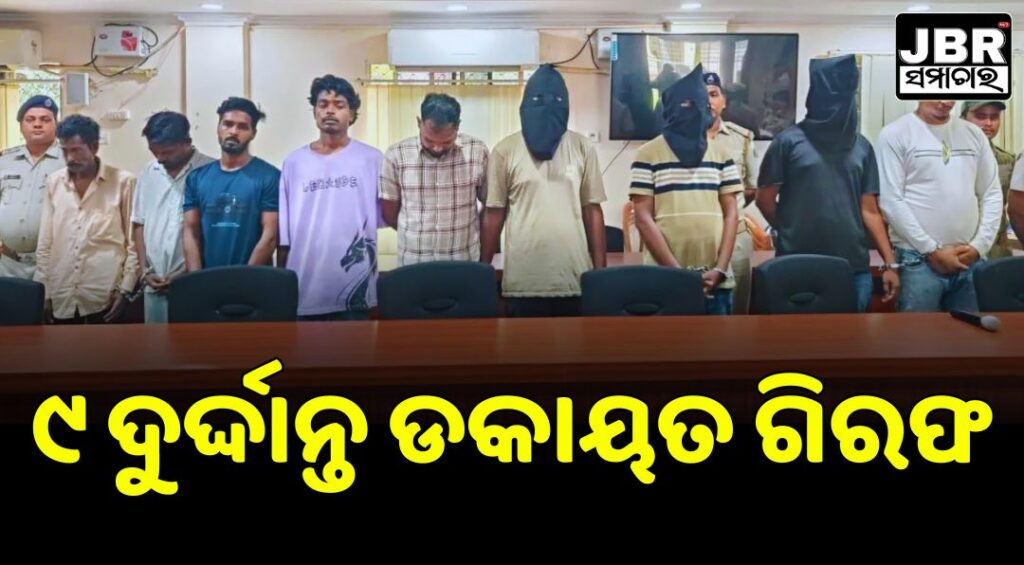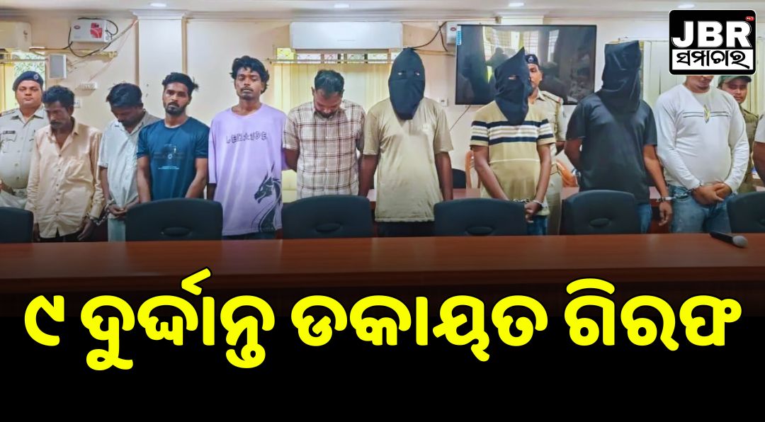 ଡକାୟତି ପାଇଁ କରୁଥିଲେ ଯୋଜନା । ଖବର ପାଇ ମାଡ଼ିବସିଲା ପୁଲିସ । ବନ୍ଧାହେଲେ ୯ ଆନ୍ତଃରାଜ୍ୟ ଦୁର୍ଦ୍ଦାନ୍ତ ଡକାୟତ। ସେମାନଙ୍କ ନିକଟରୁ ୫ଟି ବନ୍ଧୁକ, ଅନେକ ମାରଣାସ୍ତ୍ର, ୨୫ଟି ଅଫୁଟା ଗୁଳି ଏବଂ ଏକ ଦାମୀ ଗାଡ଼ି ଜବତ ହୋଇଛି ।