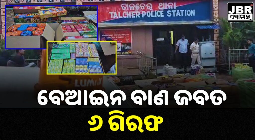 ତାଳଚେର ପୋଲିସ ପକ୍ଷରୁ ବେଆଇନ୍‌ ବାଣ ଗଛିତ ରଖିଥିବା ବିଭିନ୍ନ ସ୍ଥାନରେ ଚଢ଼ାଉ କରି ୫ ଲକ୍ଷ ଟଙ୍କାର ବାଣ ଜବତ କରାଯିବା ସହିତ ୬ ଜଣଙ୍କୁ ଗିରଫ କରାଯାଇଛି।ସୂଚନା ଅନୁସାରେ ତାଳଚେର ଥାନା ସନ୍ଥପଡ଼ା, ବଉଳଛକ, ନୂଆବଲଣ୍ଡା, ରାଧାରମଣପୁର ଆଦି ଅଞ୍ଚଳରେ ଚଢ଼ାଉ କରି ଏହି ବେଆଇନ ବାଣ ଜବତ କରାଯାଇଛି । ଆଗକୁ ଦୀପାବଳୀ ରହିଥିବାରୁ ଏଭଳି ପଦକ୍ଷେପ ନେବା ସହିତ ଚଢ଼ାଉ ଯୋରଦାର କରାଯିବ ବୋଲି ତାଳଚେର ଏସ୍‌ଡିପିଓ ଭରତ ଚନ୍ଦ୍ର ସାହୁ ସୂଚନା ଦେଇଛନ୍ତି। ଏହି ଘଟଣାରେ ପୃଥକ ପୃଥକ ୬ଟି ମାମଲା ରୁଜୁ କରାଯାଇ ବେଆଇନ ବାଣ ରଖିଥିବା ଅଭିଯୁକ୍ତଙ୍କୁ ଗିରଫ କରି କୋର୍ଟ ଚାଲାଣ କରାଯାଇଛି ।