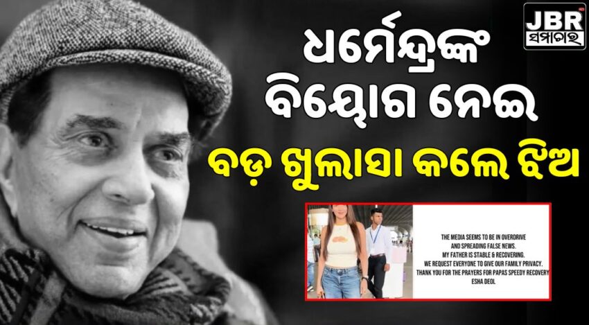 ଧର୍ମେନ୍ଦ୍ରଙ୍କ ମୃତ୍ୟୁ ଖବର ମଧ୍ୟରେ ବର୍ତ୍ତମାନ ଅଭିନେତାଙ୍କ ଝିଅ ଇଶା ଦେଓଲଙ୍କ ପ୍ରଥମ ପ୍ରତିକ୍ରିୟା ସାମ୍ନାକୁ ଆସିଛି । ତାଙ୍କ ଅଫିସିଆଲ୍ ଇନଷ୍ଟାଗ୍ରାମରେ ଏକ ପୋଷ୍ଟ ସେୟାର କରି ଏଶା କହିଛନ୍ତି ଯେ ତାଙ୍କ ବାପାଙ୍କ ଅବସ୍ଥା ସ୍ଥିର ଅଛି ଏବଂ ମିଥ୍ୟା ଖବର ପ୍ରସାରିତ ହେଉଛି । ସେ ଏହା ମଧ୍ୟ କହିଛନ୍ତି ଯେ ତାଙ୍କ ବାପାଙ୍କ ଅବସ୍ଥାରେ ଉନ୍ନତି ହେଉଛି । ବରିଷ୍ଠ ଅଭିନେତାଙ୍କ ମୃତ୍ୟୁ ନେଇ ମଙ୍ଗଳବାର ଅନେକ ଗଣମାଧ୍ୟମରେ ପ୍ରସାରିତ ହୋଇଥିଲା । ବର୍ତ୍ତମାନ ସୁଦ୍ଧା ଏହାର କିଛି ସ୍ପଷ୍ଟ ସୂଚନା ମିଳିନାହିଁ ।