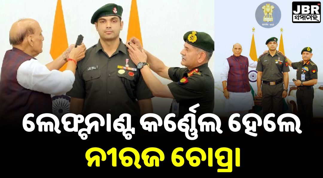 ଅଲିମ୍ପିକ ପଦକ ବିଜେତା ତଥା ଜାଭେଲିନ ଥ୍ରୋ ଖେଳାଳି ନୀରଜ ଚୋପ୍ରାଙ୍କୁ ଲେଫ୍ଟନାଣ୍ଟ କର୍ଣ୍ଣେଲ ଉପାଧି ପ୍ରଦାନ କରାଯାଇଛି । କେନ୍ଦ୍ର ପ୍ରତିରକ୍ଷାମନ୍ତ୍ରୀ ରାଜନାଥ ସିଂହ ଓ ସ୍ଥଳ ସେନା ଅଧ୍ୟକ୍ଷ ଜେନେରାଲ ଉପେନ୍ଦ୍ର ଦ୍ୱିବେଦୀଙ୍କ ଉପସ୍ଥିତିରେ ଭାରତୀୟ ସେନାରେ ସମ୍ମାନଜନକ ଲେଫ୍ଟନାଣ୍ଟ କର୍ଣ୍ଣେଲ ଉପାଧି ପ୍ରଦାନ କରାଯାଇଛି । ଆଜି ସାଉଥ ବ୍ଲକରେ ଅନୁଷ୍ଠିତ ପିପିଙ୍ଗ ସମାରୋହ ଅବସରରେ ଦୁଇଥର ଅଲିମ୍ପିକ ପଦକ ବିଜେତା ନୀରଜ ଚୋପ୍ରାଙ୍କୁ ଶୁଭେଚ୍ଛା ଜଣାଇଛନ୍ତି ।