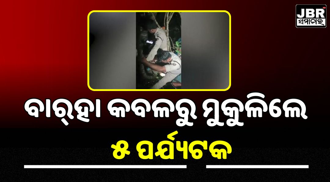 ଦୀର୍ଘ ୧୨ ଘଣ୍ଟାର ଅପରେସନ୍ ପରେ ଉଦ୍ଧାର ହେଲେ ପର୍ଯ୍ୟଟକ ଓ ଉଦ୍ଧାରକାରୀ । ଖୋର୍ଦ୍ଧା ଜିଲ୍ଲା ବରୁଣେଇ ପାହାଡ଼ରେ ଆତଙ୍କ ଖେଳାଇଥିବା ବାରହା କବଳରୁ ମୁକୁଳିଛନ୍ତି ୫ ପର୍ଯ୍ୟଟକ । ହିଂସ୍ର ବାର୍ହା ଭୟରେ ଗଛ ଉପରେ ଆଶ୍ରୟ ନେଇଥିଲେ ୫ ପର୍ଯ୍ୟଟକ । ସେମାନଙ୍କୁ ଉଦ୍ଧାର କରିବାକୁ ଯାଇଥିବା ଜଣେ ପୁଲିସ କର୍ମଚାରୀଙ୍କ ମୃତ୍ୟୁ ଘଟିଛି ।