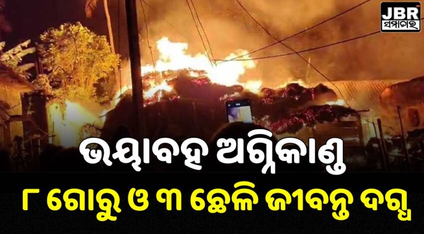 ରବିବାର ବିଳମ୍ଵିତ ରାତିରେ ଭୟାବହ ଅଗ୍ନିକାଣ୍ଡ। ଜଳିଗଲା ୬ ପରିବାରର ୧୬ ବଖରା ଘର। ପୋଡ଼ି ପାଉଁଶ ହୋଇଗଲା ଧାନ, ଚାଉଳ, ରାସନ କାର୍ଡ ଓ ପିଲାଙ୍କ ବହିପତ୍ର। ପିନ୍ଧା ଲୁଗା ଛଡ଼ା ନିଆଁର ଆଁରୁ କାଢି ପାରିଲେନି କିଛି। ୮ ଗୋରୁ ଓ ୩ ଛେଳି ଜୀବନ୍ତ ଦଗ୍ଧ। ପାଉଁଶ ତଳୁ ଅଣ୍ଡାଳୁଛନ୍ତି ବର୍ଷ ବର୍ଷର ସାଇତା ଧନ। ଭଦ୍ରକ ଜିଲ୍ଲା ପୀରହାଟ ଥାନା ନରେନ୍ଦ୍ରପୁର ପଞ୍ଚାୟତର ଛତ୍ରପଦା ଗାଁରେ ଏଭଳି ଭୟାବହ ଅଗ୍ନିକାଣ୍ଡ ଘଟିଛି। ଅଗ୍ନିଶମ ଗାଡି ବିଳମ୍ଵରେ ପହଞ୍ଚିବାରୁ ସବୁ କିଛି ଜଳିପୋଡ଼ି ଛାରଖାର ହୋଇଯାଇଛି।