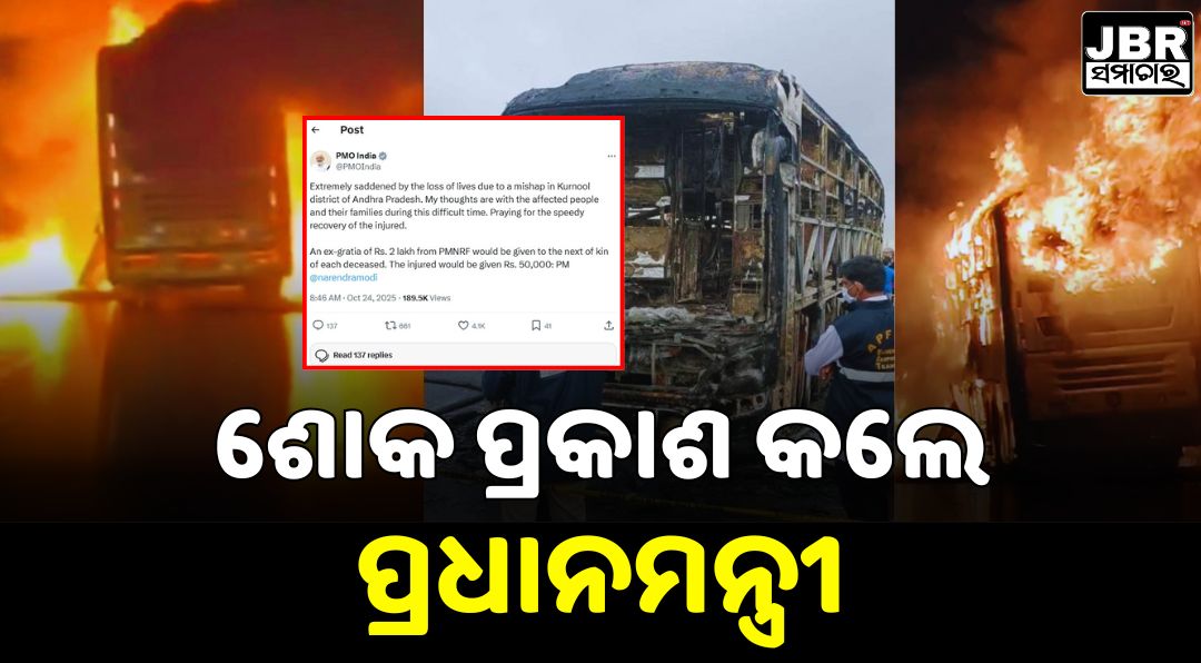 ଆନ୍ଧ୍ରପ୍ରଦେଶ କୁର୍ଣ୍ଣୁଲ ଜିଲ୍ଲାରେ ହାଇଦ୍ରାବାଦ-ବେଙ୍ଗାଲୁରୁ ହାଇୱେରେ ବସରେ ନିଆଁଲାଗିଯିବାରୁ ୨୦ ଜଣଙ୍କ ଜୀବନ ଚାଲିଯାଇଛି । ଆନ୍ଧ୍ରର କୁର୍ଣ୍ଣୁଲ ଜିଲ୍ଲା ଚିନ୍ନା ଟେକୁରୁ ଗାଁ ନିକଟରେ ଅଘଟଣ ଘଟଛି । ଏହି ଘଟଣାରେ ଦୁଃଖ ପ୍ରକାଶ କରିଛନ୍ତି ରାଷ୍ଟ୍ରପତି, ପ୍ରଧାନମନ୍ତ୍ରୀ ଏବଂ ଆନ୍ଧ୍ରପ୍ରଦେଶ ମୁଖ୍ୟମନ୍ତ୍ରୀ । ବସରେ ପାଖାପାଖି ୪୦ ରୁ ଅଧିକ ଯାତ୍ରୀ ଥିଲେ । ଆଗକୁ ମୃତ୍ୟୁ ସଂଖ୍ୟା ବଢିବ ବୋଲି ଆଶା କରାଯାଉଛି ।