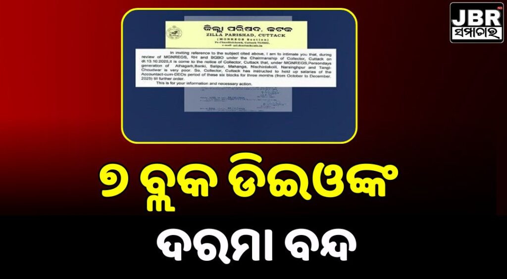 ମନରେଗା କାମ ଠିକ୍ ଭାବରେ ନହେବାରେ ଅସନ୍ତୋଷ ଜଣାଇ ଜିଲ୍ଲାପାଳ ୭ଟି ବ୍ଲକ ଡିଇଓଙ୍କ ଦରମା ଅକ୍ଟୋବରରୁ ଡିସେମ୍ବର ପର୍ଯ୍ୟନ୍ତ ବନ୍ଦ କରିଛନ୍ତି। ଏହି ବ୍ଲକଗୁଡିକ ହେଲା: ଆଠଗଡ, ବାଙ୍କୀ, ସାଲେପୁର, ମାହାଙ୍ଗା, ନିଶ୍ଚିନ୍ତକୋଇଲି, ନରସିଂହପୁର ଓ ଟାଙ୍ଗୀ ଚୌଦ୍ୱାର।